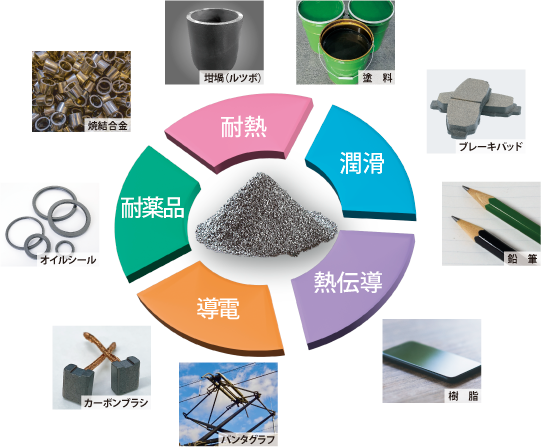 黒鉛の中でも鱗状黒鉛からは様々な製品が製造できます。